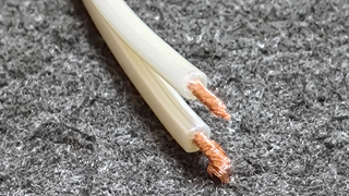それまでは、コーナンで買ったOFCのスピーカーケーブルでした。見てくれは、写真の通りで、FS-303の方が太いです。値段は、コーナンのOFCのスピーカーケーブルが350円ちょっと、FS-303が700円ちょっとだったので、値段は倍ですね。