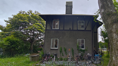 彦根高等商業学校とは今の滋賀大学のことで、大正13年にヴォーリズが外国人教師のための住居を3棟建てたそうで、その1棟が残っていて、今彦根市が管理して活用しているそうです。建築面積54㎡、木造2階建て、ハーフティンバー様式だそうです。予算に結構な制限があったようで、かなり質素な作りだそうです。
