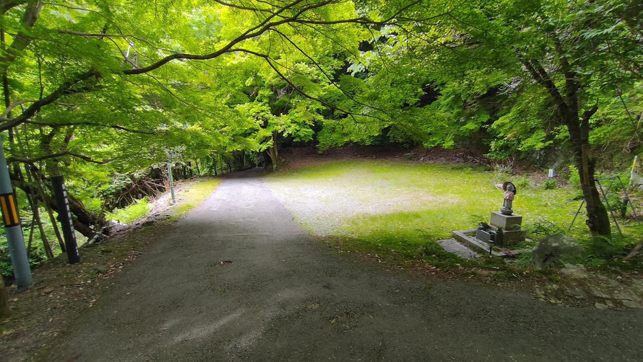 目指す金蔵寺参拝者駐車場は、この三叉路から200mほどです。こんなところです。