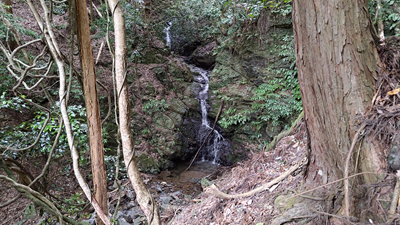 一の滝と二の滝です。下にあって流れが見えているのが二の滝、上にあってちょっと木に隠れているのが一の滝。二の滝の上に行って一の滝だけ拝むというのはできませんでした。安全にアクセスするルートが見つかりませんでした。